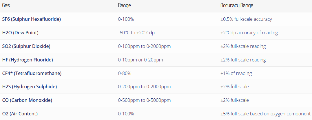 Exceptionally accurate and stable readings are achieved in simultaneous analysis and data-logging of SF6, SO2 and H2O (dew point) gases. Fully compatible with the Rapidox Gas Recovery Bag, a gas output nozzle allows for the analyser to be attached, ensuring that all SF6 gas is recovered.
