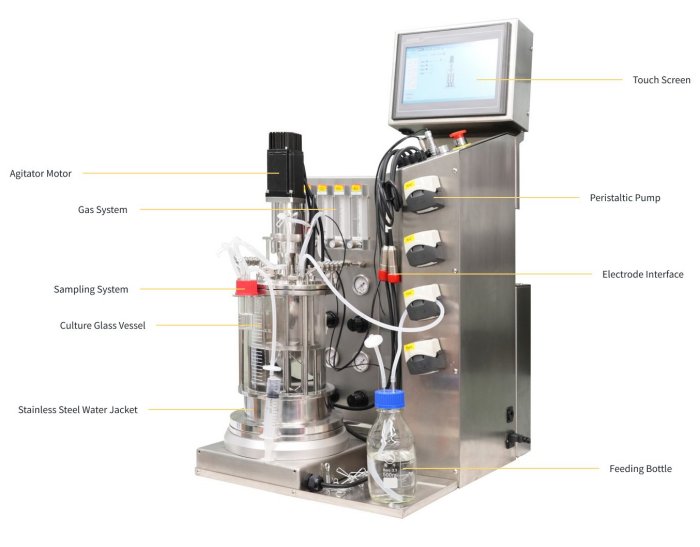 - With an external chiller optional, you don`t have to worry about finding a suitable cooling water source for your bioreactor.