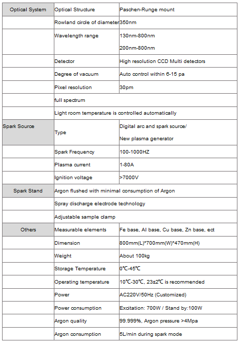 - Wavelength coverage 130nm-800nm, permitting simultaneous analysis for up to 31 elements.