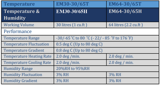 EM-series Mini Environmental Chambers offers flexibility, uniformity and control accuracy required for cost-effective testing. Ideal for testing smaller products such as electronic components, automotive component, these chambers combine superior performance with compact design that is perfect for small component testing. These chambers can be easily mounted on a laboratory bench top.