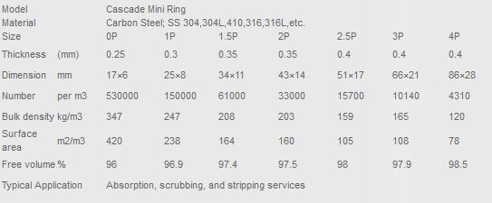 Metal cascade mini ring is made of materials like carbon steel, stainless steel or Aluminum alloy, etc. The product has features such as thin wall, heat resistant, high free volume, high capacity, low resistance, high separation efficiency and so on. It is especially suitable for rectification towers under vacuum to treat thermosensitive, decomposable, polymerizable or cokable systems, so it is widely used in packing towers in petrochemical industry, chemical fertilizer industry and environmental protection, etc.