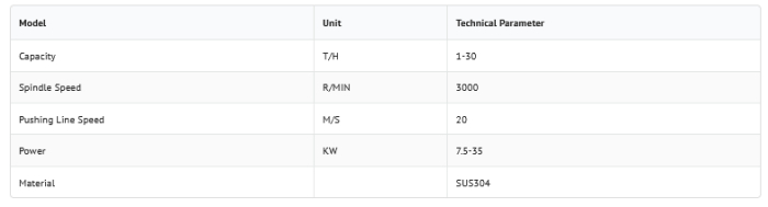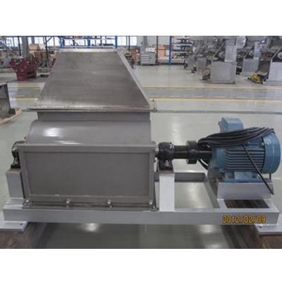 This fruit crusher is composed of a frame, a working chamber (an upper and a Lower casing), a pusher rack, a knife holder feeding hopper and a discharge hopper. This machine is driven by a high-power motor, and the tool holder is linked via a special coupling to make the tool holder rotate at high speed. When the fruit enters the working chamber, due to the action of the centrifugal force, it quickly grinds and crushes on the sharp knife teeth to form small, even and uniform particles. These particles then continuously enter the hopper through the narrow slot of the knife holder to complete the crushing work.