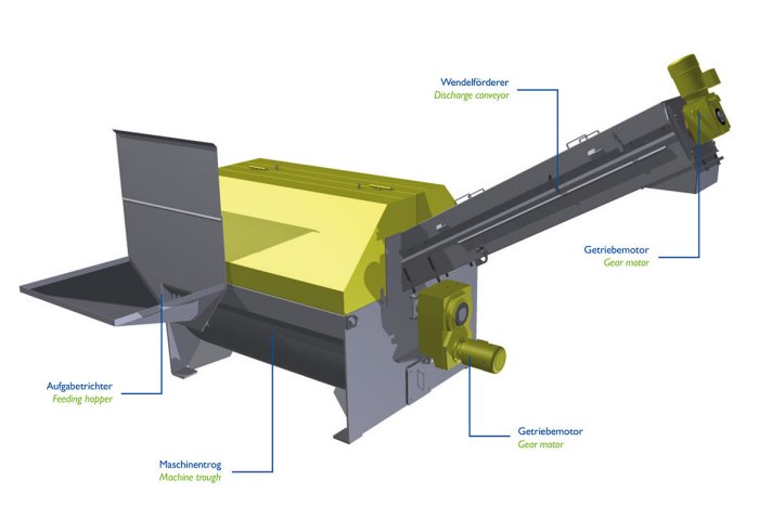 This system is designed for medium to large ready-mixed concrete plants (> 5 ready-mixed concrete HGV mixers) for washing out concrete, mortar or anhydrite. The system offers a large water bath and therefore enables the residual concrete to be emptied quickly. By means of the patented combination with the BIBKO® spiral conveyors, discharge heights of up to 3.5m can be achieved. The system includes an aluminium lid to open the lid of the machine easily, as well as a winter package for cold regions. The receiving hoppers are available in various designs and sizes to adapt the system to the individual conditions.