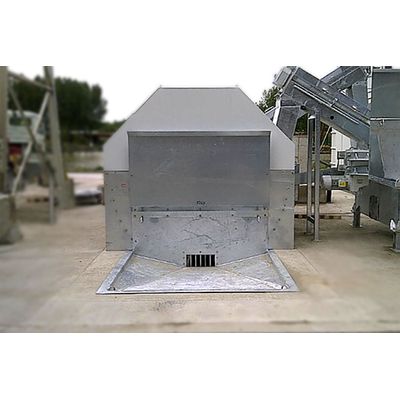 The external bucket elevator is an alternative to the pump discharge conveyor. This bucket elevator is located on the main shaft of the ComTec recycling system model. The attached buckets take up the wash water, as well as the residual  material, and feed it to the actual recycling system. In addition, the external bucket elevator allows collected wash water (e.g. from the mixing plant) to be fed into the recycling system.