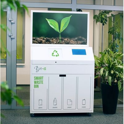 Bin-e is an AI-based smart waste bin, designed for public places, enabling them to simplify recycling. It sorts and compresses the waste automatically, controls the fill level and processes data for convenient waste management.