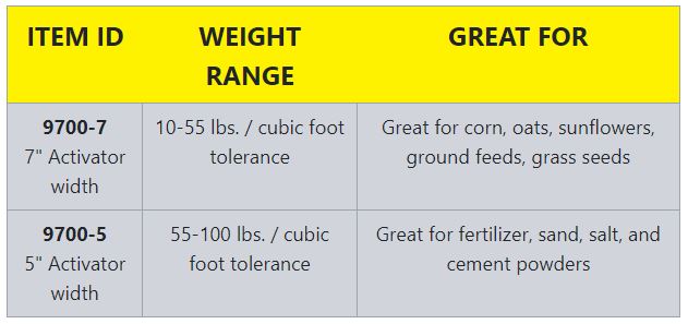 - Activator frame stays tight to bin wall. Ideal for high shear load applications and use with grain spreaders.