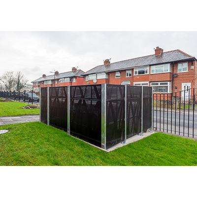 The metroSTOR PBLE Bin Screen System is designed for 2-wheeled bin containers from 140L to 360L capacity. The ideal solution to overcome bin blight in multifamily residential areas cost-effectively with integral divider frames maintaining each bin container upright and easily accessible. Up to 6 modules can be added to make a single metroSTOR PBLE Bin Screen unit and these can be arranged in facing formats to provide an enclosure with the option of end doors and blanking panels added. Hot Dip Galvanised frames are standard finish with colour powder coat options and the full selection of panel cladding types.