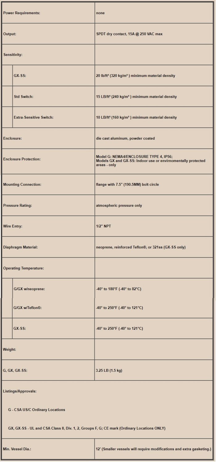 Binatrol - Model G/GX/GX-SS -Diaphragm Bin Level Switches