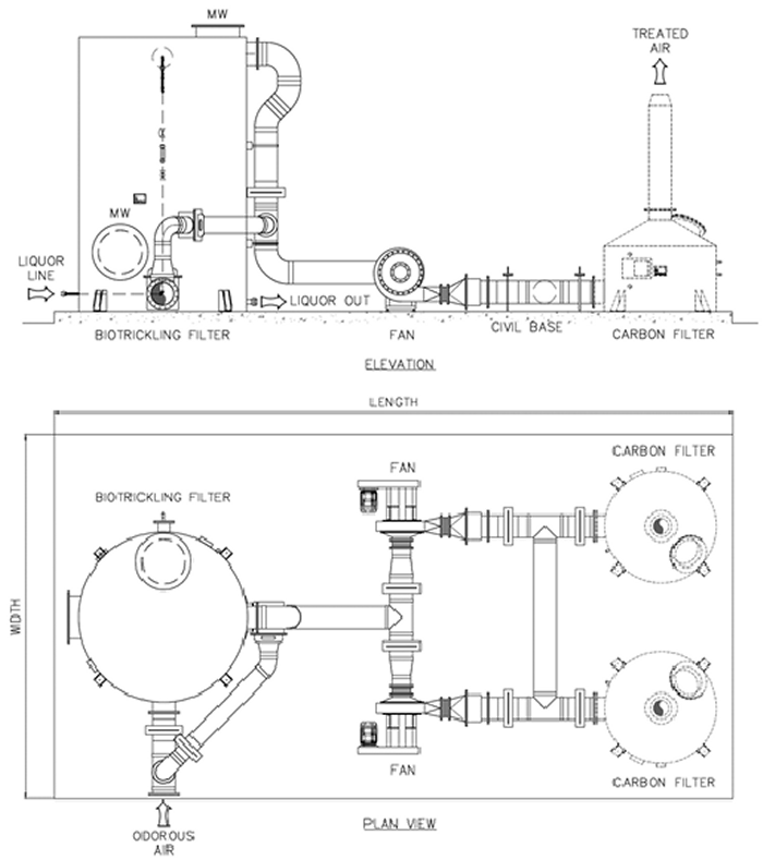 - They are able to reliably treat high levels of contamination (over 200ppm H2S) and achieve removal efficiencies of >99% H2S removal and >95% odour removal in a single tower.