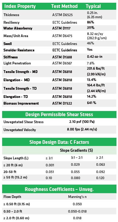 The SC150BN shall meet Type 3.B specification requirements established by the Erosion Control Technology Council (ECTC) and Federal Highway Administration’s (FHWA) FP-03 Section 713.17.