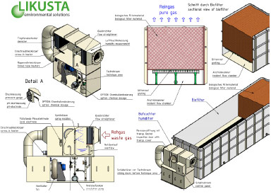 Environmentally sound decomposing of organic pollutants; The use of environmentally friendly systems for biological waste-gas treatment is constantly increasing. In Likusta biofilters, harmful and odorous substances from waste-gas and exhaust-gas flows are decomposed to non-toxic, odourless and largely low molecular weight substances, such as carbon dioxide and water. This is done biochemically by the metabolic activity of microorganisms.