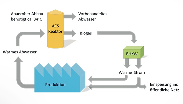 In ACS reactors, large amounts of biogas are formed as a byproduct in the wastewater treatment. This biogas cannot only directly generate electricity and heat, but also be used as biomethane.