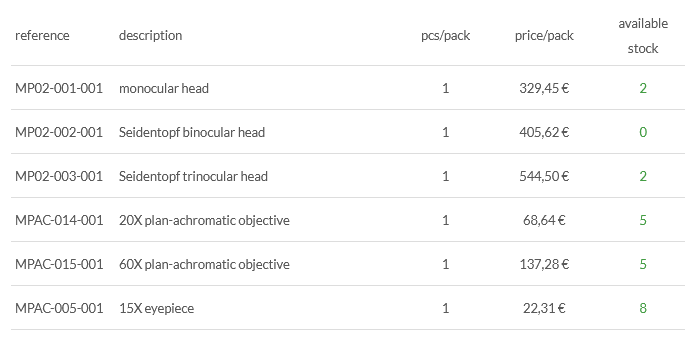 Monocular, binocular, or trinocular head (depending on model) inclined at 30°, interpupillary adjustment of 55-75 mm, and 360° rotatable. Quadruple revolving nosepiece, WF10X/18 mm eyepieces, and achromatic objectives 4X, 10X, 40X, and 100X (spring-loaded and oil immersion). Double-layer mechanical stage (132 x 142 mm) with a movement range of 75 x 40 mm. Coarse and fine coaxial focusing with 0.004 mm precision. Abbe condenser NA 1.20 with iris diaphragm and adjustable LED illumination. Includes cover, fuse, filters, and 100-240V adapter. 2-year warranty.