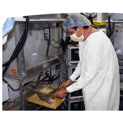 Ventilation rate is controlled passively with the lab chamber for animal cage washers. A fan keeps air flowing, and holes drilled into the sides of the chambers allow stale air to be displaced. You control the amount of ventilation by controlling which ventilation ports are open or closed in the animal chamber.