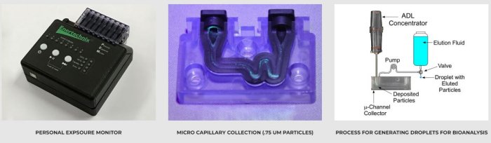 Biotechnix technologies provide efficient interfaces to a variety of analyzers. Whether the chosen analysis method is polymerase chain reaction (PCR), proteomics or immunoassay, our microchannel fluid concentrator enables portability and affordability not found in other devices. The Biotechnix µADL (micro-aerodynamic lens) aerosol concentrator has been demonstrated to be effective as part of an endotoxin exposure monitor which combined our novel aerosol concentrator, a micro-particle collector, and a microfluidic sample processing and detection platform. For new applications, our µADL aerosol concentrator can be used by companies who are developing and/or augmenting bio-detection equipment and methods—mass spectrometry, proteomics, etc.—enabling them to build more efficient and complete systems.