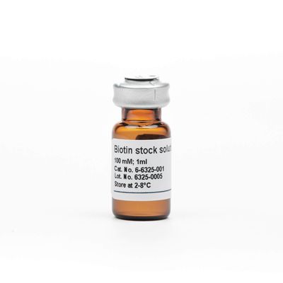 Biotin stock solution for preparing a dissociation buffer when using the Strep-tag technology for cells (Fab-TACS/Nano-TACS, CD3/CD28 Streptamer, MHC I Streptamer) or exosomes (Fab-TACS for exosomes). Biotin addition causes the rapid dissociation of isolation reagents from the surface. Thus, fully functional and highly pure cells or exosomes are received.