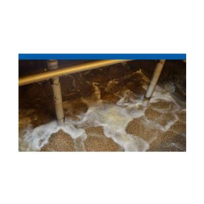 Microorganisms in the biofilm that attach on the surface of the carriers take up pollutants as food for growth.