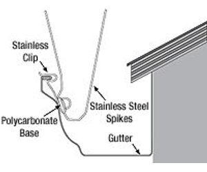 Thin stainless steel spikes protrude upwards from a plastic base, making it difficult for birds to gain a foothold. Gutter-Point`s specially designed clips make it easy to install and the spike configuration protects not only the edge of the gutter, but the inside as well.