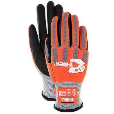 For jobs requiring flame resistance and impact protection, the Magid T-REX Inferno Series TRX824 Black Flame Resistant Impact Gloves deliver flame, puncture and ANSI level 2 cut resistance combined with full coverage M-Force Defense System back-of-hand impact protection.