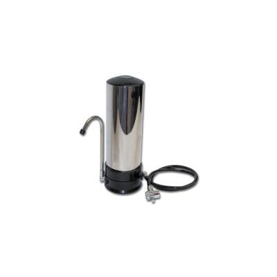 Countertop water filtration systems give you healthy drinking water without the expense of installation. Systems hook up to your tap water faucet with an adapter and your filtered water is drawn from the diverter into the faucet spout. (NOT FOR USE with wide-mouth faucets); only for use with cold water. 5-micron carbon block water filter reduces or removes chlorine, chloramines, lead, cysts (giardia, cryptosporidium), other chemicals from your tap water. 2.5”x10” housing with plastic plastic (non-leaching white poly) top and bottom and attractive stainless steel wrap. Filter life - approximately 2,500 gallons or one year (depending on water usage and water quality) For use with cold water only; maximum temperature 100 F. 1-year limited warranty on parts; proudly manufactured in the U.S.
