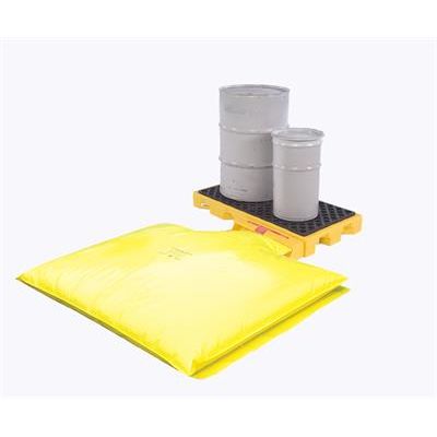 Hidden Containment Bladder Automatically Unfurls To Capture Large Spills Or Drum Leaks. Ultra-Spill Deck Bladder Systems are low profile, polyethylene containment decks which meet EPA and Uniform Fire Code Spill Regulations. Available in 1, 2 and 4 drum modules, the low 5 ¾" deck height allows safe and convenient drum loading, even without drum handling equipment. Add the optional polyethelene loading ramp for even greater handling ease. Compact footprint saves valuable floor space - perfect for drum waste collection usage. Use the Spill Deck Bladder Systems in place of taller containment pallets - low 5 ¾" deck height offers significant safety and handling benefits. Overspills and small leaks are captured in the sump; catastophic leaks deploy the bladder, allowing the system to meet regulations.