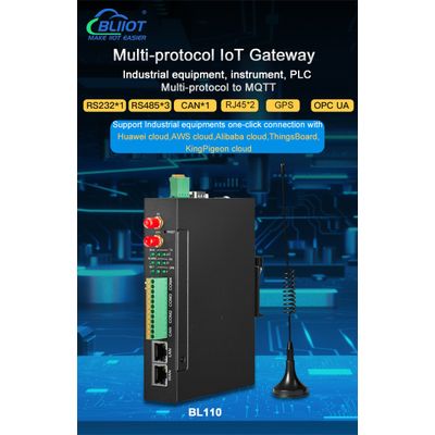BL110 IIoT gateway comes with 4 serial ports and 2 network ports. Support various PLC protocols, Modbus RTU, Modbus TCP, DL/T645, BACnet/IP, BACnet MS/TP to Modbus TCP, OPC UA, MQTT, BACnet/IP protocol conversion, Huawei IoT, Alibaba IoT, AWS, ThingsBoard, Sparkplug B, Ignition SCADA, BLIIoT Cloud. Support custom secondary development.