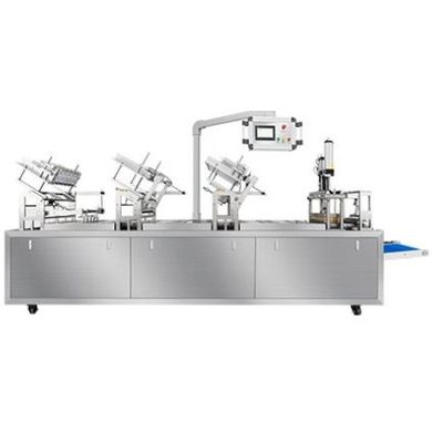 It is a full servo crawler packaging machinery. The blister card packaging process is fully automatic, including taking paper cards, taking blister sheets, the second paper card, pressurized heat sealing, product demoulding, conveying and output and more, meet strict European and American standards and CGMP standards.