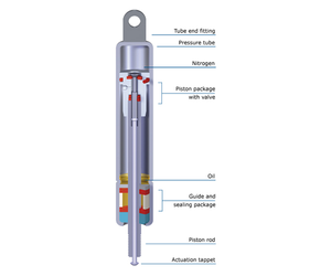 When the valve is closed, thereby interrupting the gas exchange between both pressure chambers, the BLOC-O-LIFT® gas spring is blocked. The valve closes automatically when the valve tappet is released externally.