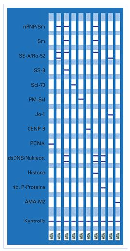 - Depending on the spectrum of antigens used, it is possible to analyze several antibodies next to each other and simultaneously under identical conditions.