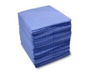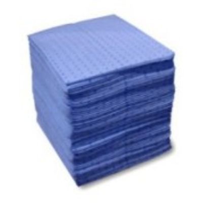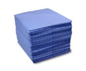 Blue fine fiber absorbent mats have a surface texture similar to tissue paper, which is great for gripping smooth surfaces like cement and for removing the oil sheen. They absorb hydrocarbon-based fluids and repel water. A perforation helps reduce waste.