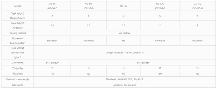 - Air cooling,continuous ozone output adjustable