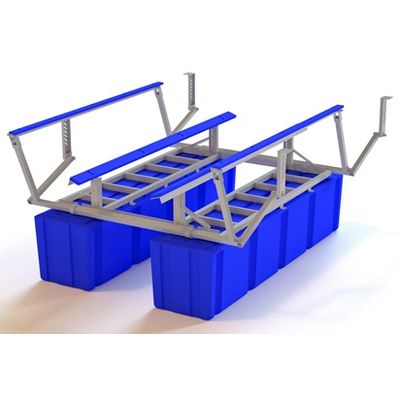 The Aegis boat lift tank system is precision-molded, linear low-density polyethylene (LLDPE), resistant to the worst of weather conditions, and low water damage. The lift keeps the boat out of the water and free from marine growth on outdrives and the hull of your boat. The frame is constructed from hot-dipped galvanized steel and corrosion-resistant hardware. The lift also allows you to have easy access to your watercraft to eliminate difficult maintenance challenges. The lift is compatible with EZ Dock products and traditional dock systems. Through the use of our air assist pumps, the new boat lift is capable of hoisting boats up to 7,000 lbs. in weight and 28 feet in length. The Aegis 7 Boat Lift features fully adjustable standard bunk locations for V hull boats, with the ability to customize as needed for a variety of hull configurations. The lift also features premium low-friction and high-strength ultra-high molecular weight (UHMW) polyethylene bearing surfaces.