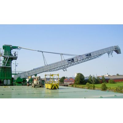 As the material is loaded onto the boat, its level above the water is altered. The boat is weighed down at the same time as the hold is filled up with the material. The boat loader’s vertically adjustable functions ensure that the material’s drop height is adjusted. To reduce dust and spillage, you can adapt your boat loader with different forms of enclosures, filters, chutes or loading bellows. For more flexible operation of the boat loader, it can be equipped with remote control via radio.