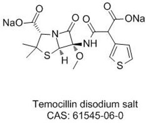 - Synonyms: disodium [2S-(2alpha,5alpha,6alpha)]-6-(carboxylato-3-thienylacetamido)-6-methoxy-3,3-dimethyl-7-oxo-4-thia-1-azabicyclo[3.2.0]heptane-2-carboxylate; (6S)-6-[(Sodiooxycarbonyl-3-thienylacetyl)amino]-6-methoxypenicillanic acid sodium salt; Temocillindisodiu