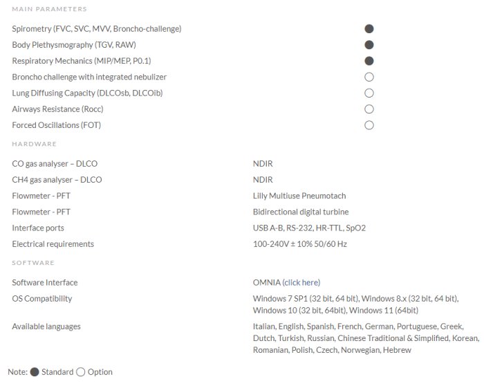 Maximum accuracy guaranteed. Large cabin provides comfort while maintaining high sensitivity to volume changes. Low range pressure sensors guarantee accuracy of measurement (signal/noise ratio).