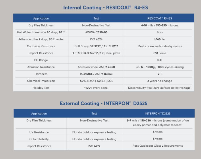 Brand: YHR, Model Number: FBE T-01, Certificates: NSF/ANSI 61 Certified and Listing, Place of origin: Hebei, China, Dry Film Thickness(interior): 5-10 mils / 150-250 microns, Dry Film Thickness(exterior): 4-9 mils/ 100-230 microns, Hot water immersion 90 days, 70°C: Pass, Adhesion after 7 days, 90°C water: ≥16MPa, Corrosion Resistance: Meets or exceeds industry norms, Impact Resistance: > 18 Joule, PH range: 3-13, Abrasion Resistance: CS-17, 1000g, 1000 cycles