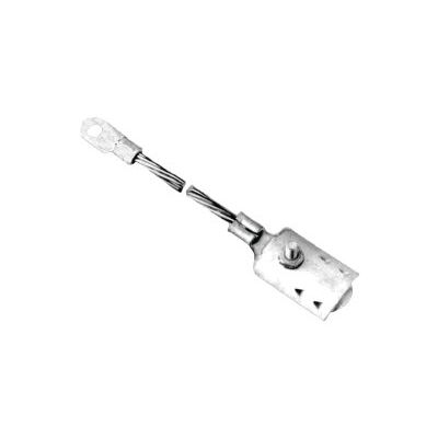 Bonding and grounding is achieved in one product. The D Bond Assembly consists of a No. 6 AWG 7 strand ground wire and a UL approved terminal lug. Each clamp consists of two formed brass plates which are tin plated`. The inner plate is equipped with a stud onto which the outer plate and one flat washer, lock washer, and nut are assembled. The inner plate also has a ferrule to which the ground wire is attached.