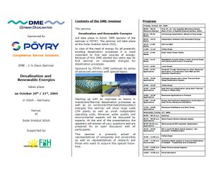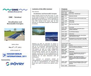 In view of the need of energy for all presently existing desalination processes it is most important to find new sources of energy. Because of this DME started two years ago its first seminar on renewable energies for desalination processes.