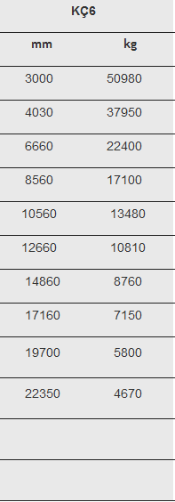 Max. Lifting Capacity ( 3 mt) 59980 kg. Max. Hydraulic Extension 17160 mm. Max. Manual Extension 22350 mm. Hydraulic Boom 6. Manual Boom 2. Total Moment 185 Tonm. Working Pressure 295 bar. Rotation Angle Endless / Continuous. Max. Outrigger Reach 8712 mm.