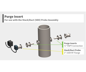 The Purge Insert is mounted between either the Stack/Duct (SDX) Probe and the Process Flange to provide a location to connect the purge medium (e.g. Instrument Air, Nitrogen, etc.).