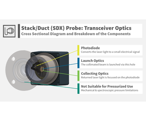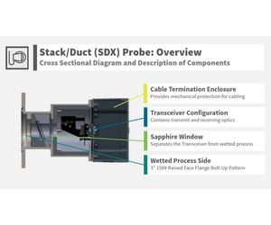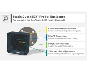 Non-Contact In-Situ Measurements: 3" 150# Raised Faced Flange Bolt-Up Pattern. Use in Hazardous Area Applications: (A) Ex ib IIC T5 Tamb less than 70°C Gb (C1 Div1, G: A, B, C, D). Quantifiable Volumetric Result: Confirmation of both gas type and concentration. Remote Measurement Head Paired with one of our GasFinder3 Instruments. Stack/Duct (SDX) Probe: When combined with one of the GasFinder3 Analyzers, it creates a direct and non-contact measurement within a stack or duct for quantitative or feedback control applications.