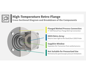 - High-Temperature Retro-Flange: These are like sections through a thousands of cubes and has three faces that form the inside of a cube and regardless of the angle of incidence of the incoming laser beam, the laser light is always reflected at 180° back to the Stack/Duct (SDX) Probe.