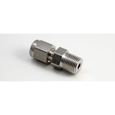 Bored-through stainless steel compression fitting for PT916 probe. 1/8 NPT male threads. 1.2 inches in length (30.5 mm).
