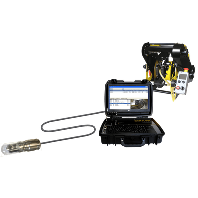 A camera for inspecting vertical boreholes and wells with diameters from DN100, up to a depth of 500 m and a water level of 100 m.