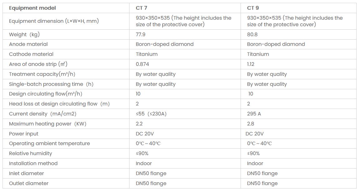 - High efficiency: baffle-type flow channel design, anode tantalum wire and double short-side packaging to maximize the degradable contact surface.