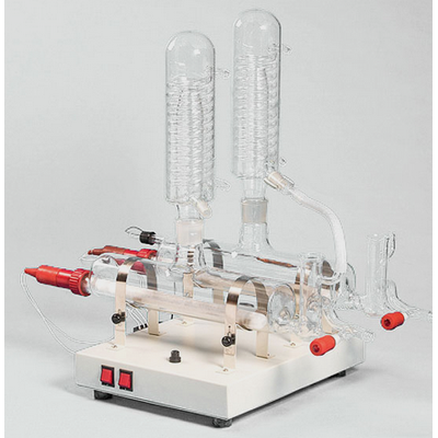 Borosilicate condenser and boiler are fitted with a removable silica sheathed heater and screw threaded connectors for ease of cleaning.