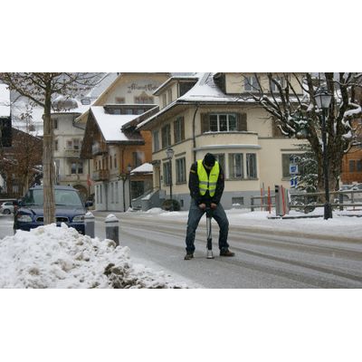 The SOBO³âº applies the method of conductivity measurement to determine the leftover quantity of salt/calcium chloride on a surface. Connected to the SOBO³âº mobile application, the SOBO³âº displays on the screen and on the mobile application the measured information, such as the amount of residual salt/calcium chloride, pavement temperature and instantly reports to the maintenance center. Being aware of your surface condition in real time with geolocalization will give you the keys for smart decision making.