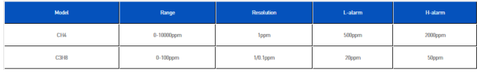 - Alarm point: Default: Low alarm: 500ppm; High alarm: 2000ppm. Support personalized setting.