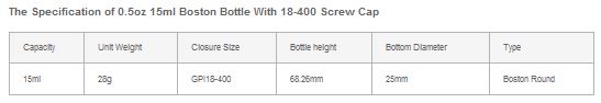 The Details of 0.5oz 15ml Boston Bottle With 18-400 Screw Cap