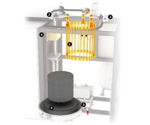 One clear advantage is the easy loading and unloading of the HTBL type furnaces. Once the hearth has been lowered, the sample is accessible from all sides without limitations. Sample loading is extremely easy and user-friendly, especially with delicate samples. Additionally, sample thermocouples can placed at specified locations within the chamber. A retort may also be used with the HTBL. The movement of the loading area is fully automated and driven by a hydraulic arm. Once the loading area has reached the lowest position, the user can manually rotate the loading platform outward by 90 °.